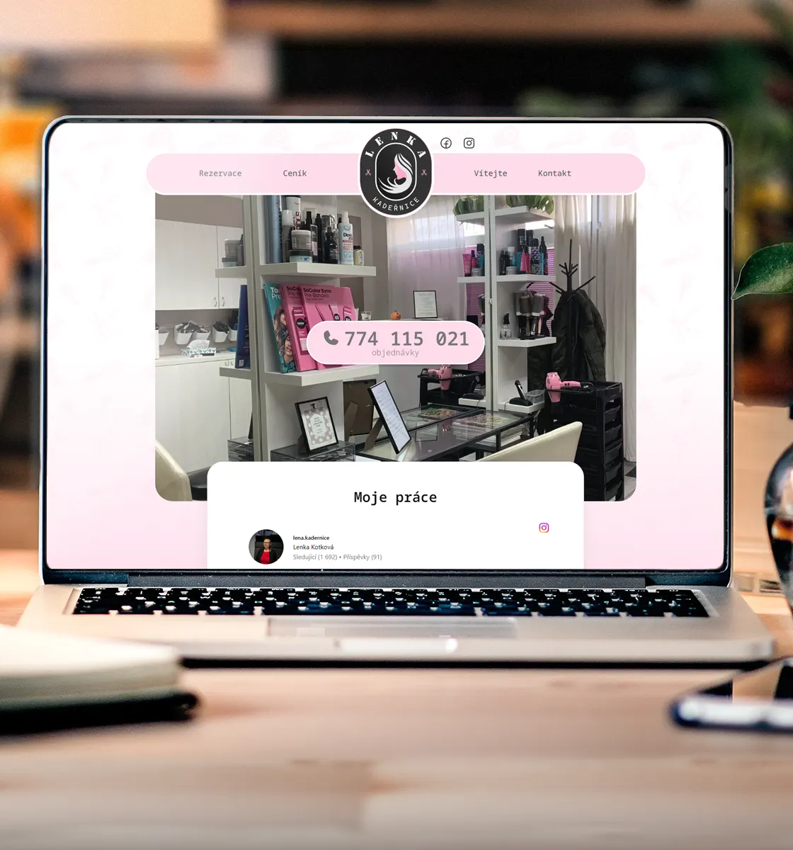 Návrh a vytvoření loga, design webových stránek s integrovaným CMS pro jednoduchou správu obsahu, zákaznické reference, ceníku a propojení s rezervačním systémem Reservio. SEO a výkonnostní optimalizace, propojení s Instagramem. Optimalizace pro mobilní zařízení. Propojení s Google Search Console a Google Analytics pro analýzu stránek.