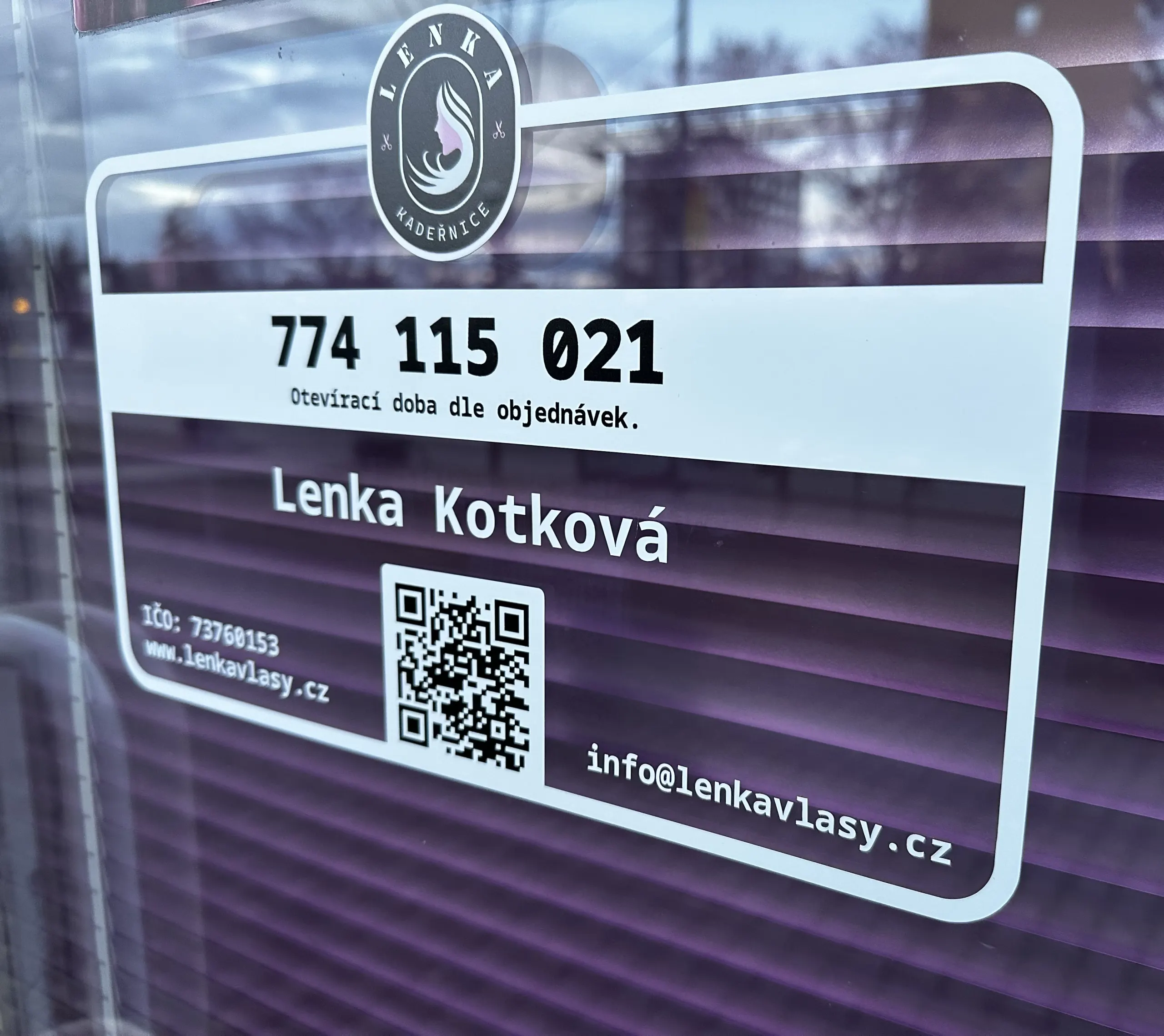 - Firemní štítek na dveře, s otevírací dobou a kontakty